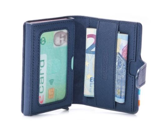 LEANSCHI Blue Leather RFID Safe Credit Card Holder with Aluminium Container