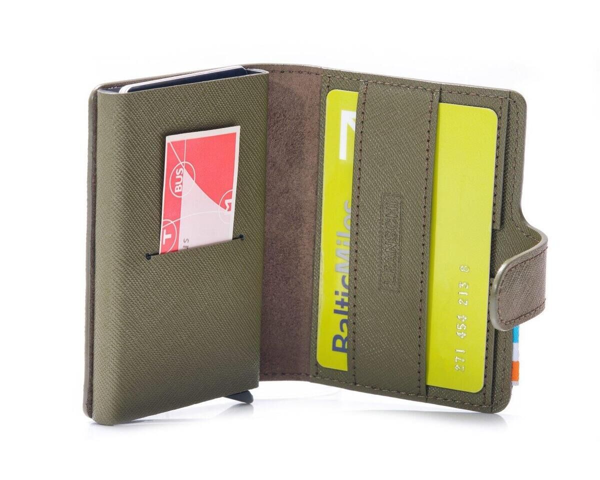 Product information "RFID-safe Tech-Wallet in molegrey leather" Much practical, this credit-card holder is featuring an alu-container for up to 7 cards with quick credit-cards release-system (thanks to its lever underneath). Inside, bank-notes and more cards can easily find their place. Even the small-format Parisian