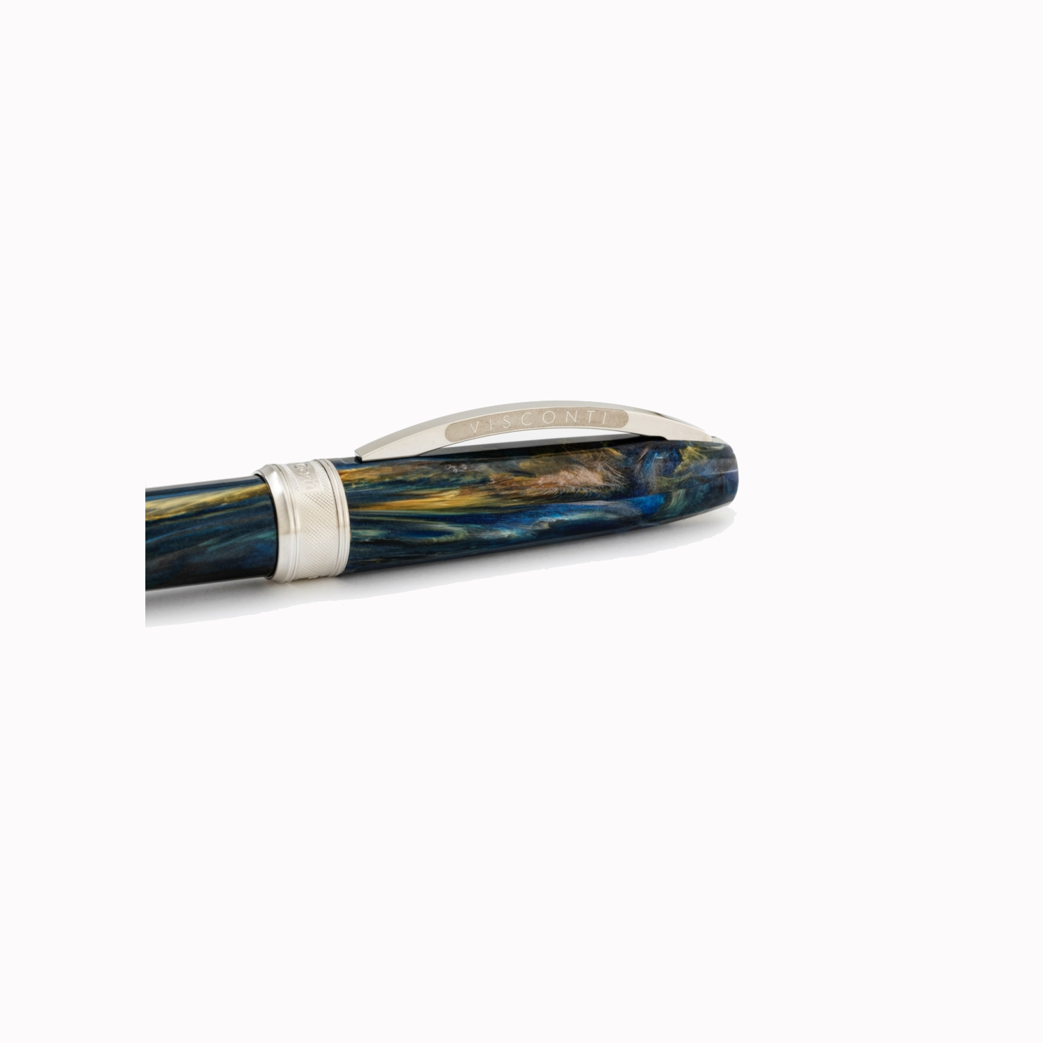 Vincent Van Gogh is considered one of the greatest painters in the history of art and he has inspired this very successful Visconti pen collection. Visconti re-imagined the colours, texture and emotions used by Van Gogh. The collection is a tribute to the Impressionist art, and one of its icons. Made from natural resin uniquely mixed to represent palettes of oil paint, this pen utilizes Visconti’s eighteen-faceted design, with the many edges enhancing its vivid colours. The meticulous selection of resins and their colour mix is one of the major innovations introduced by this line. It is enriched with a dedicated ring decorated with the name of the painting inspiring the pen.