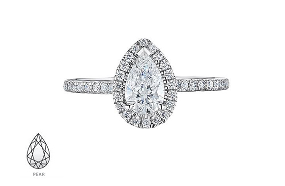 The pear cut, with its teardrop shape, creates a subtle slimming effect on your finger. Unlike round, the cut isn't standardized so you can choose the proportions that you like best.