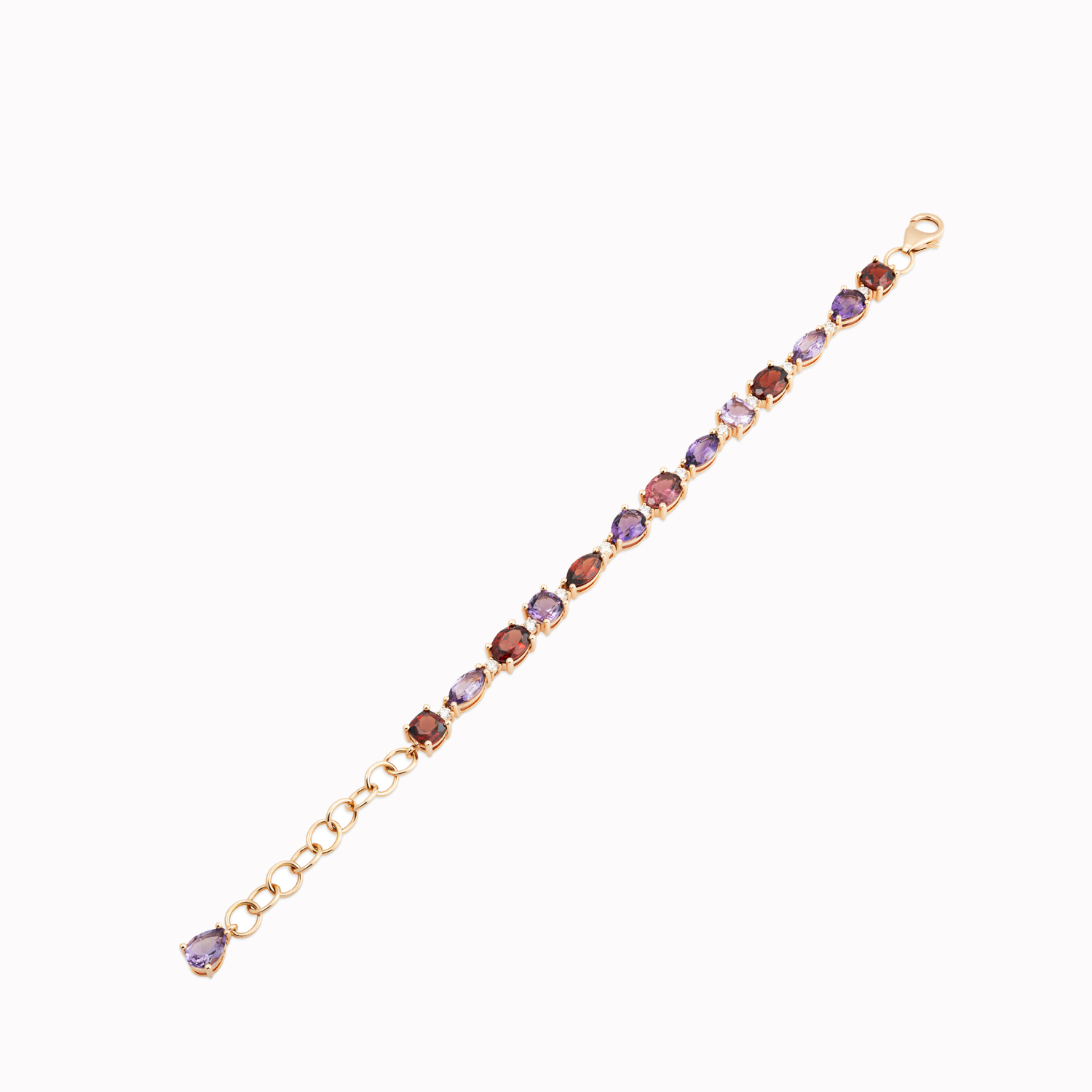 18 kt rose gold bracelet with amethysts and diamonds