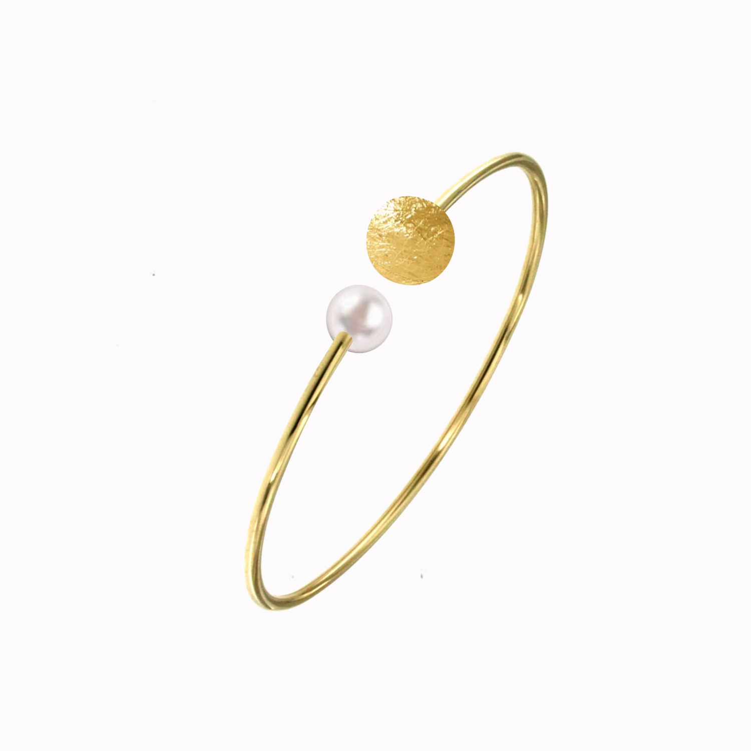 Silver 925 bangle 33% micro plated in yellow gold set with 1 fresh water Pearl 5.50cts in total.