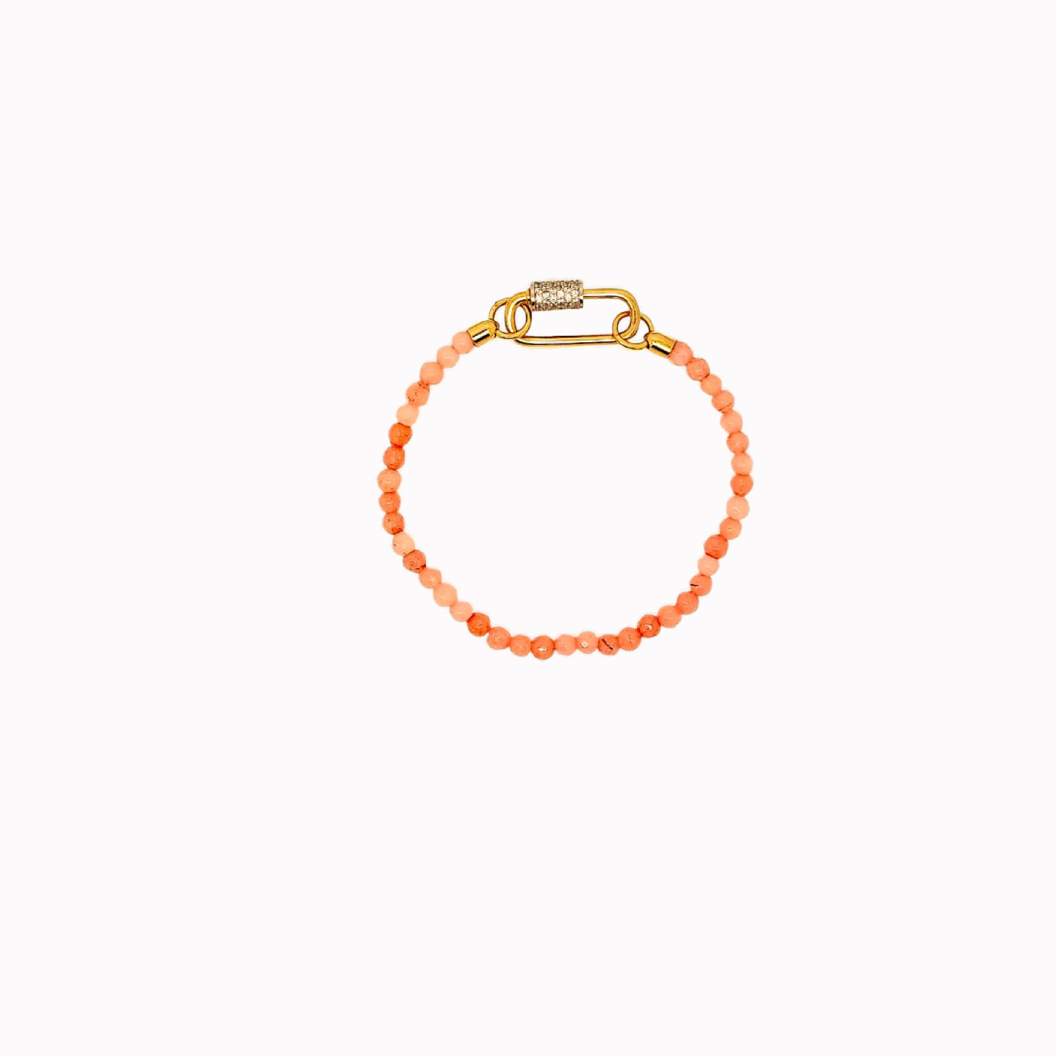 Rose Quartz Beaded Bracelet with Cubic Zirconia Carabiner Clasp