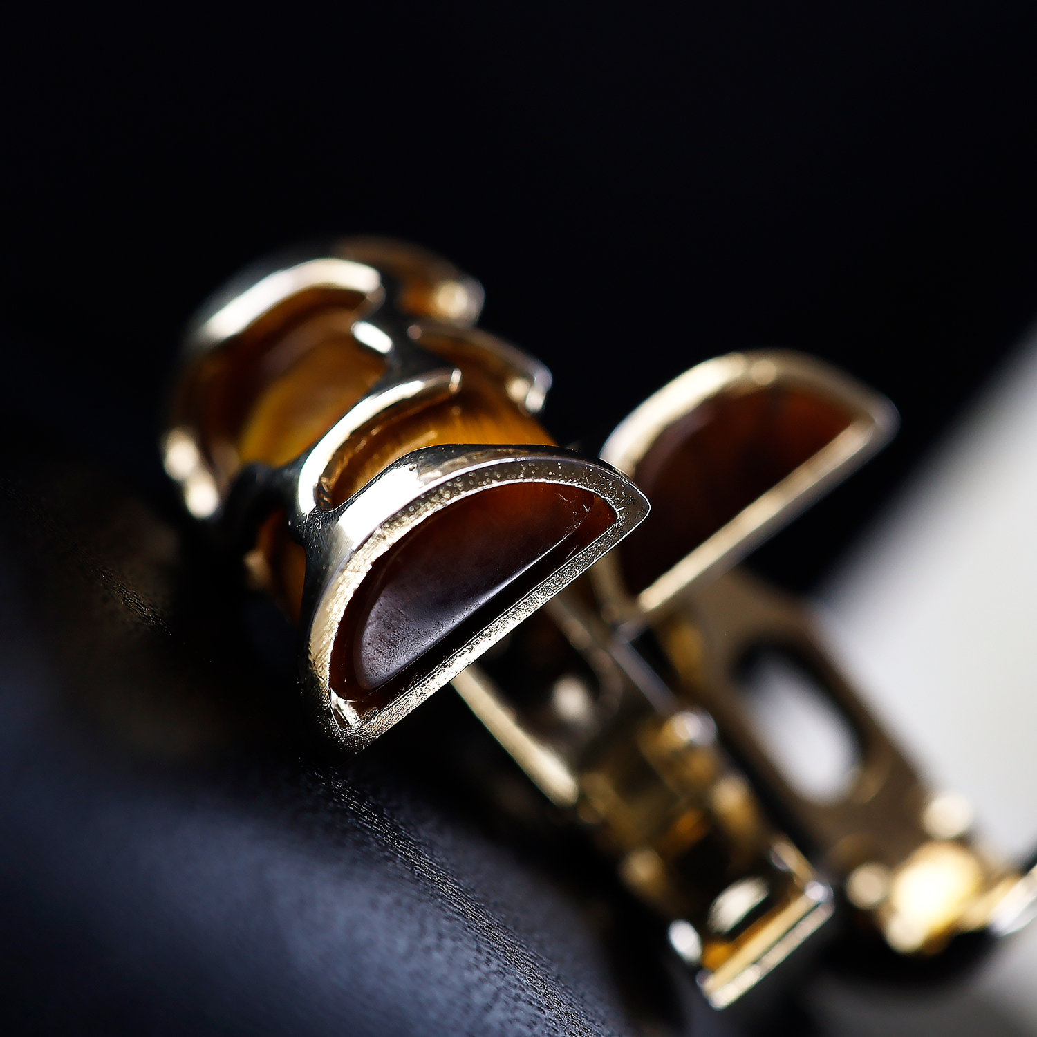 Beautifully made by Visconti! These cufflinks are highlighted with Tiger's Eye gem and a .925 Sterling silver and Gold vermeil overlay
