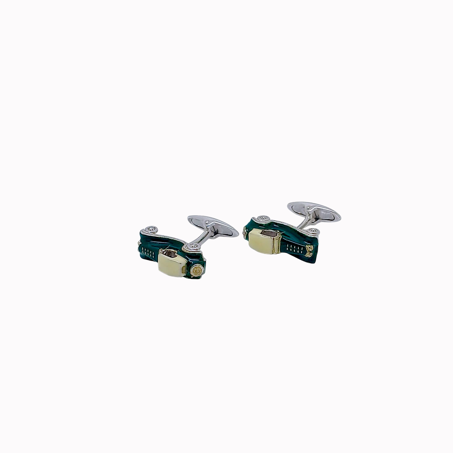 Silver 925 cufflinks with car motive and enamel. This product comes with presentation box & a certificate by mazzini.