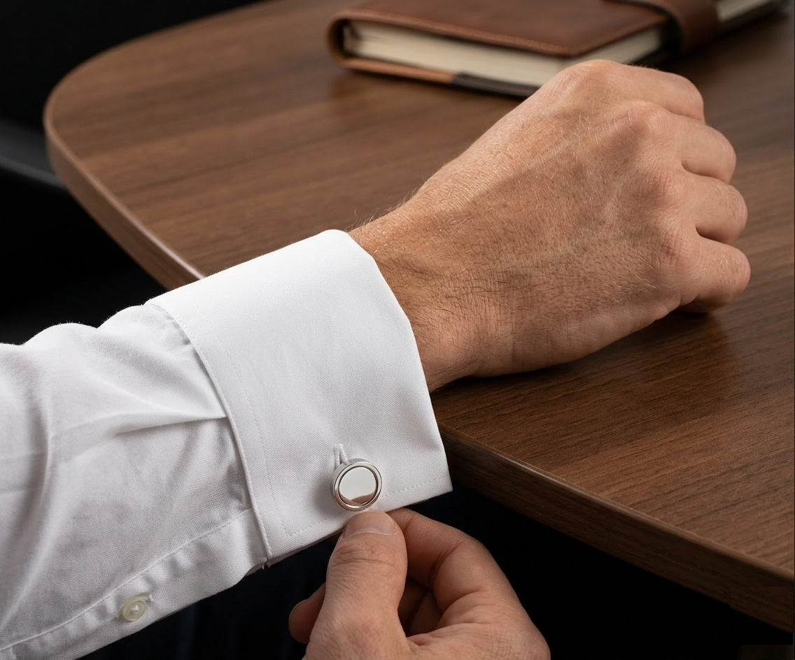 Silver 925 Round Cufflinks Unoaerre. Elegant and bright in rhodium-plated sterling silver. An accessory with a clean and elegant design. For important occasions and for a special gift.