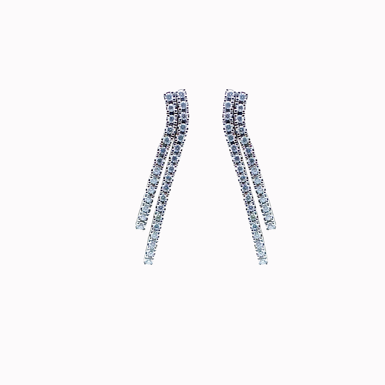 A pair of 18kt white gold tennis set dangling earrings inset...