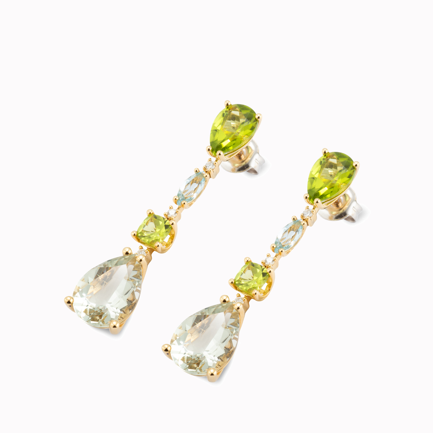 18kt yellow gold earring with peridot, amethyst, Sky topaz a...