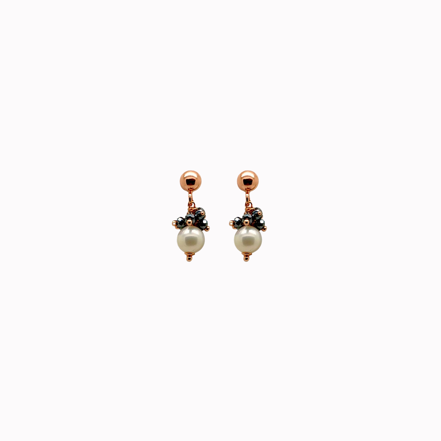 Earrings rose gold plated zirconia grey fresh water pearls