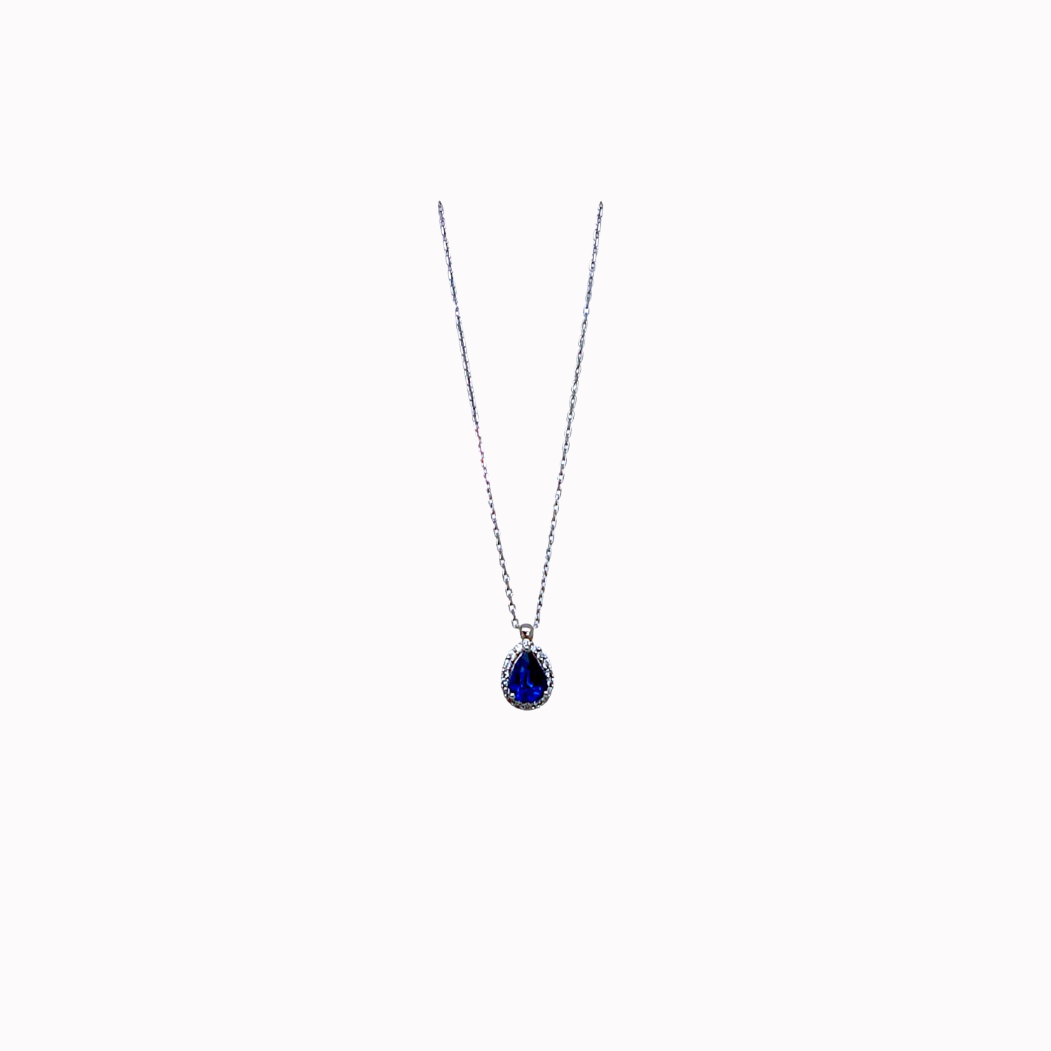An 18kt white gold necklace inset with 2 pear shaped sapphir...