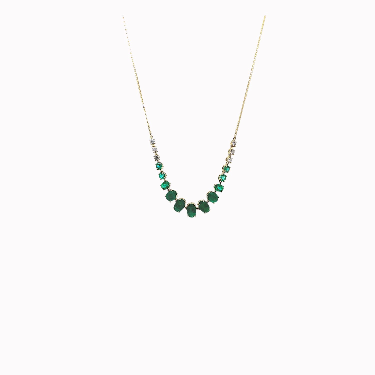 An 18kt white gold necklace - inset with an oval cut emerald...