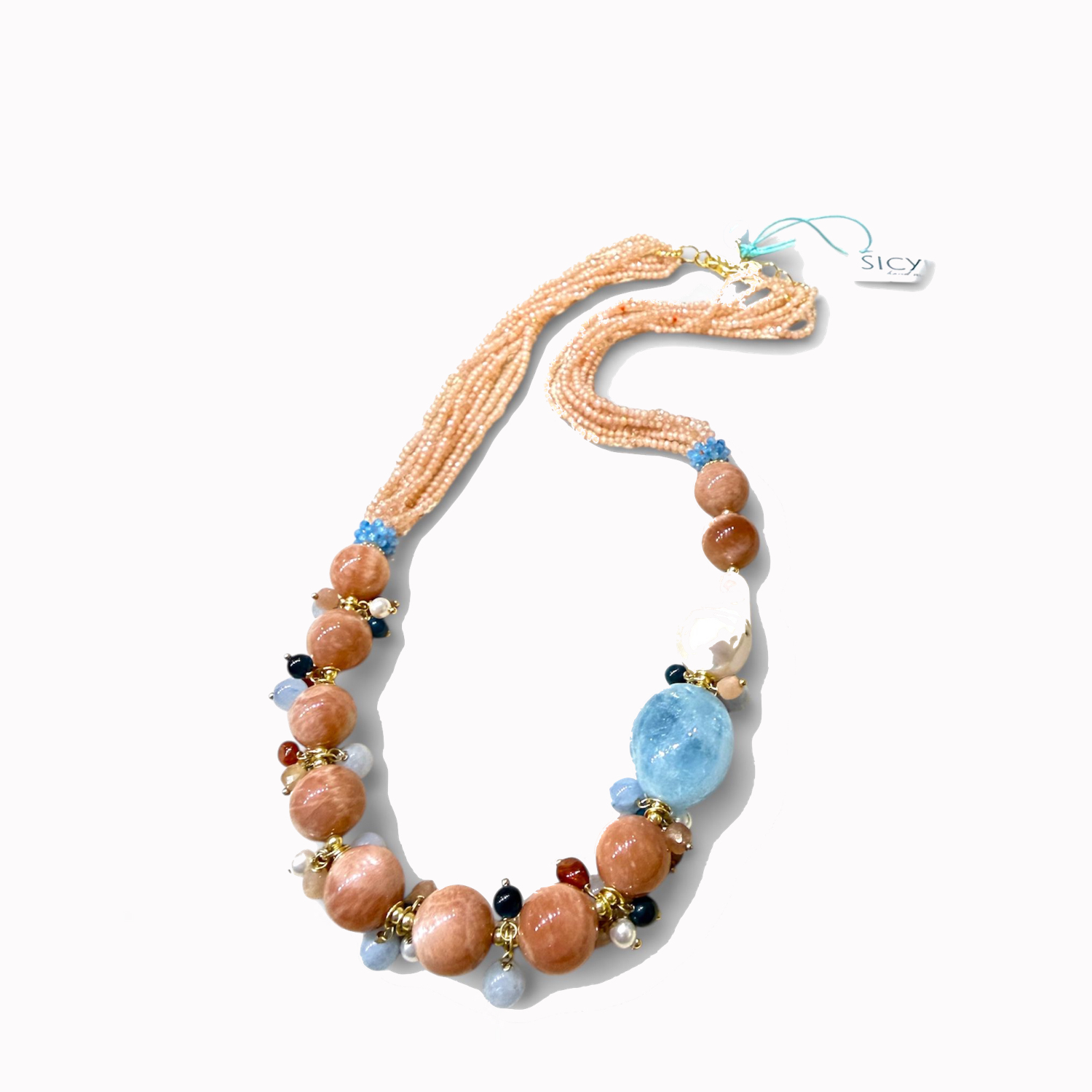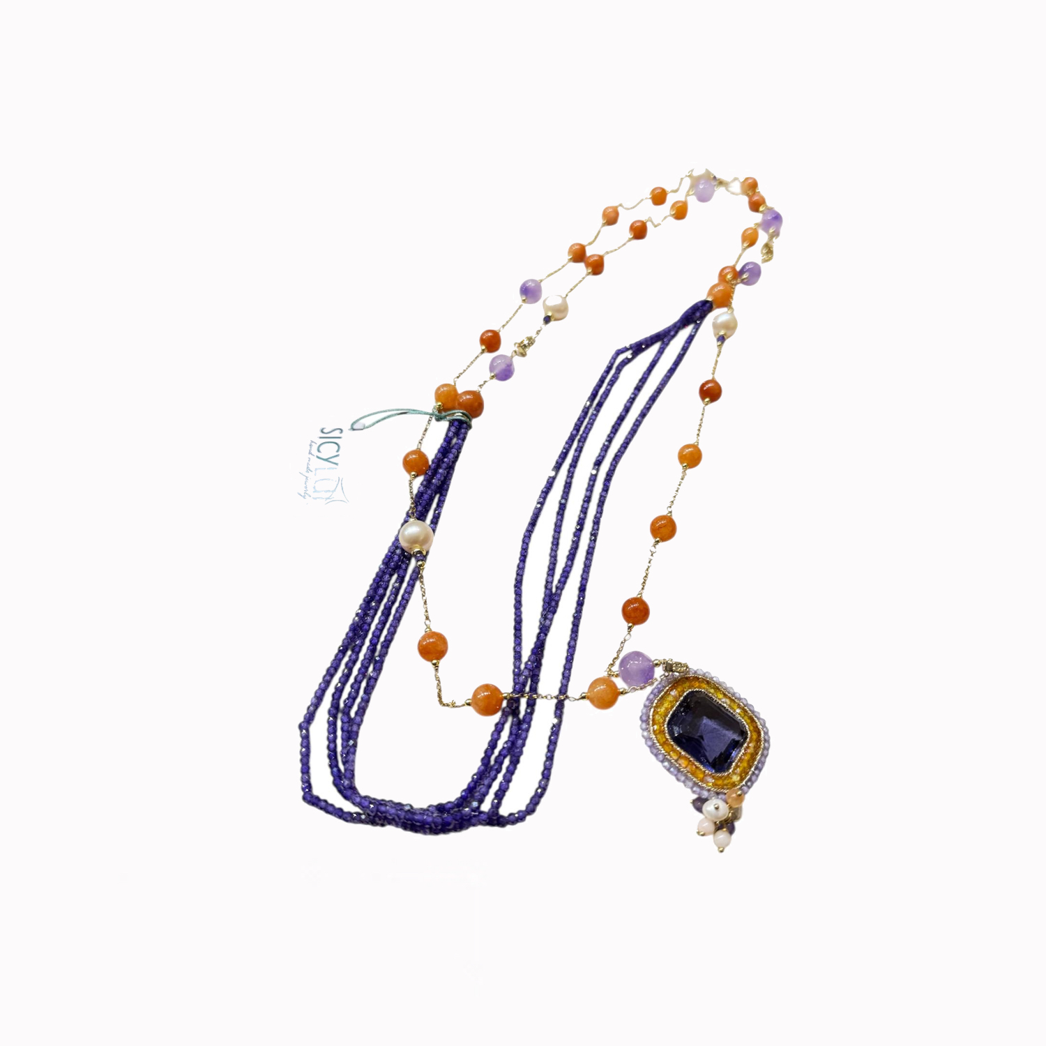 Multicolor beryl necklace with pearls, ametr., Hematitre and...