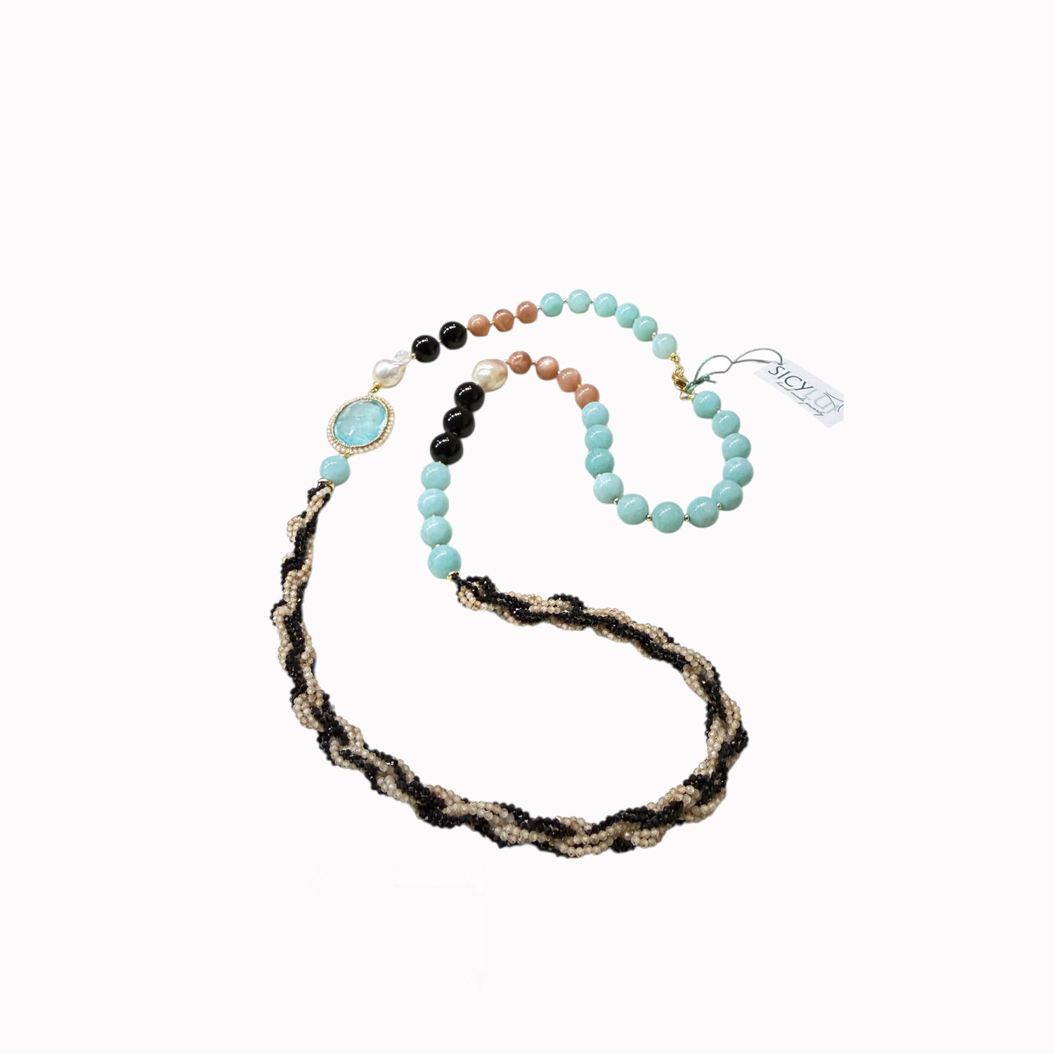 Multicolor beryl necklace with pearls, hematite and AG925 el...