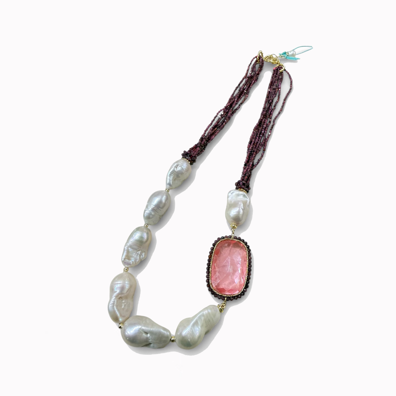 Necklace with baroque fresh water pearls, turchese, AG925 - ...