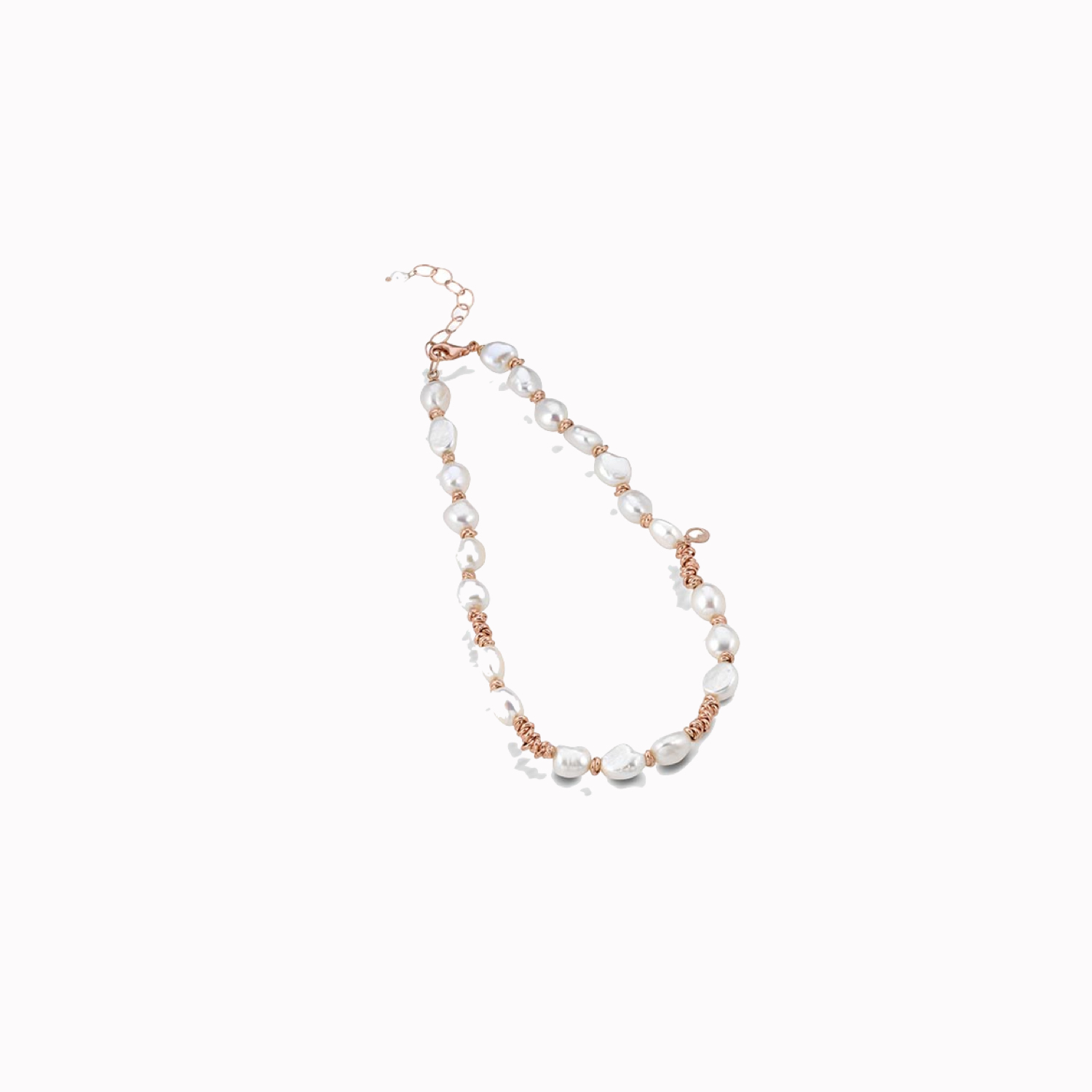 Necklace With Fresh Water Pearls 925 Silver with Rose Gold P...