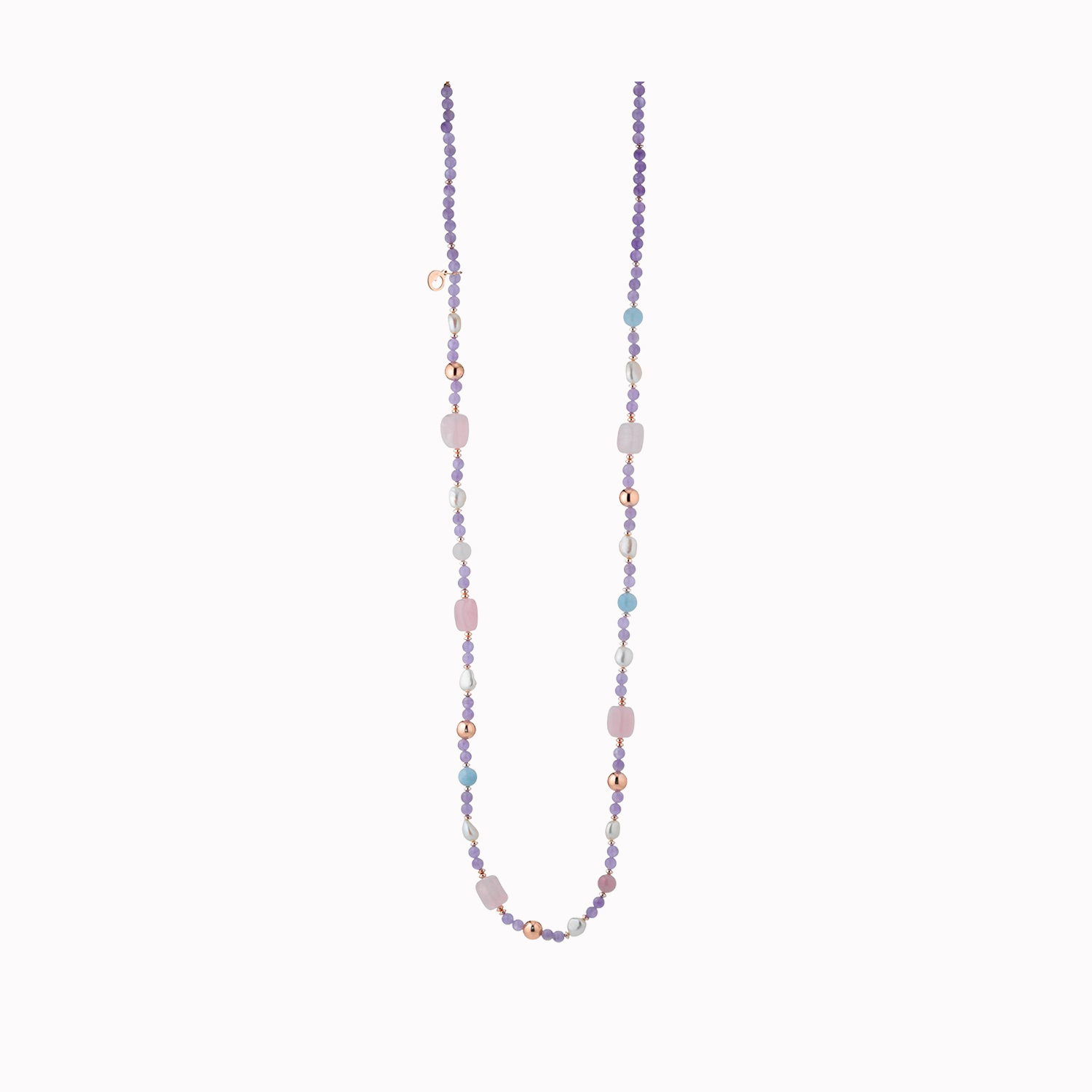 Jade necklace lav. with pearls, rose quartz, beryl, hemi. an...
