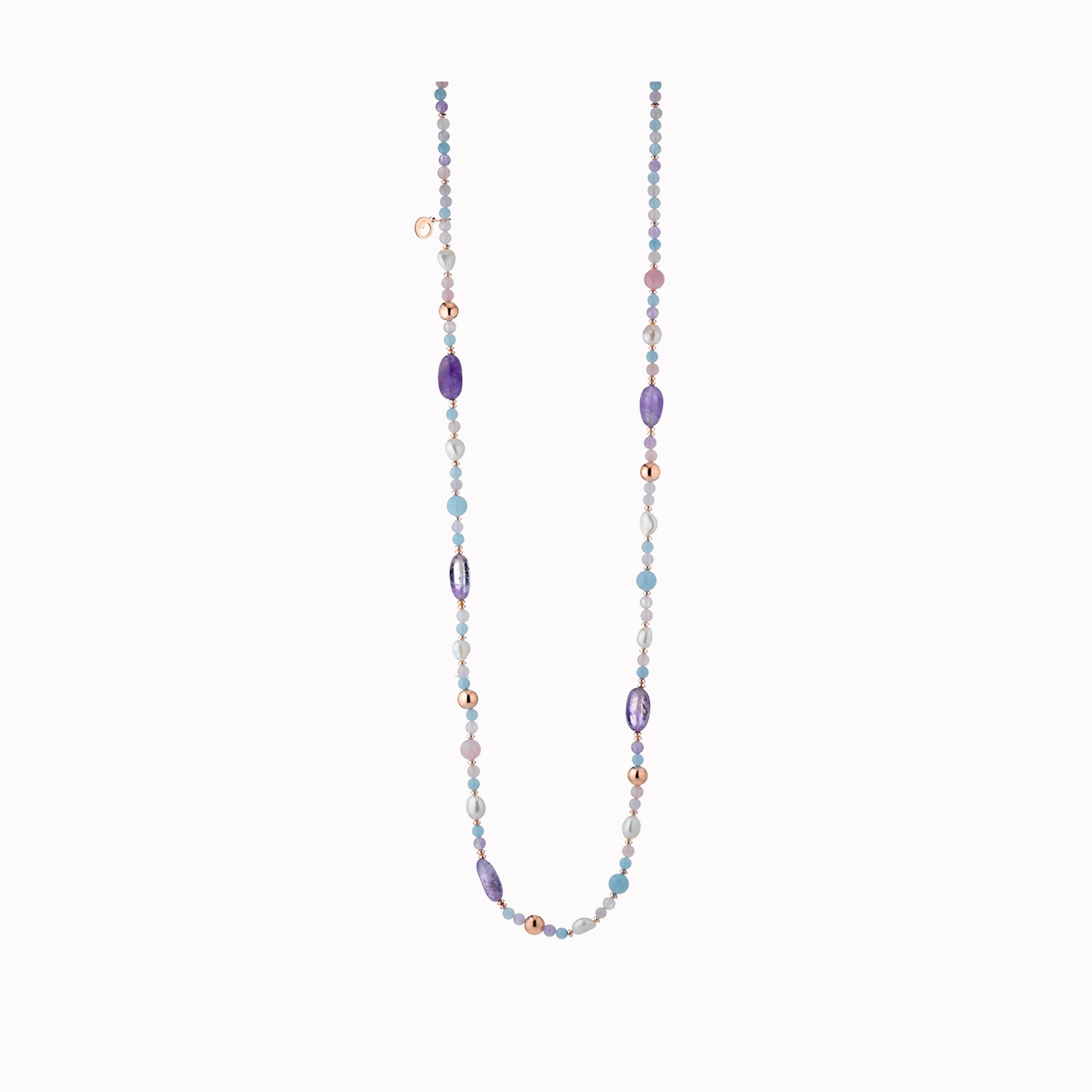 Multicolor beryl necklace with pearls, ametr., Hematitre and...