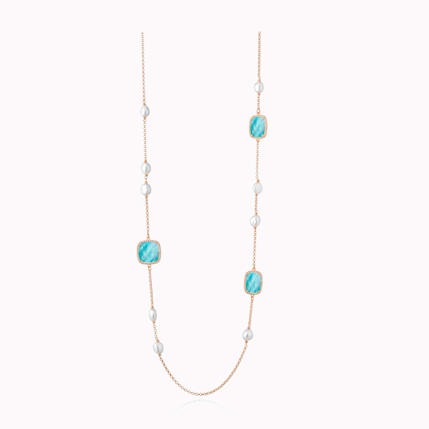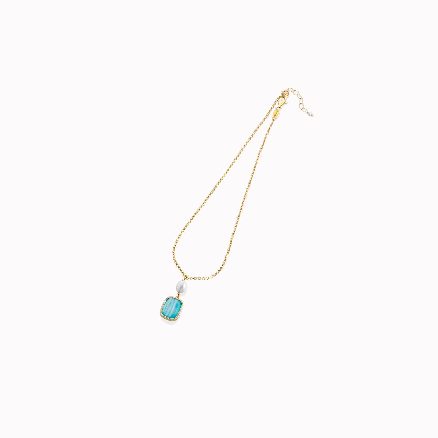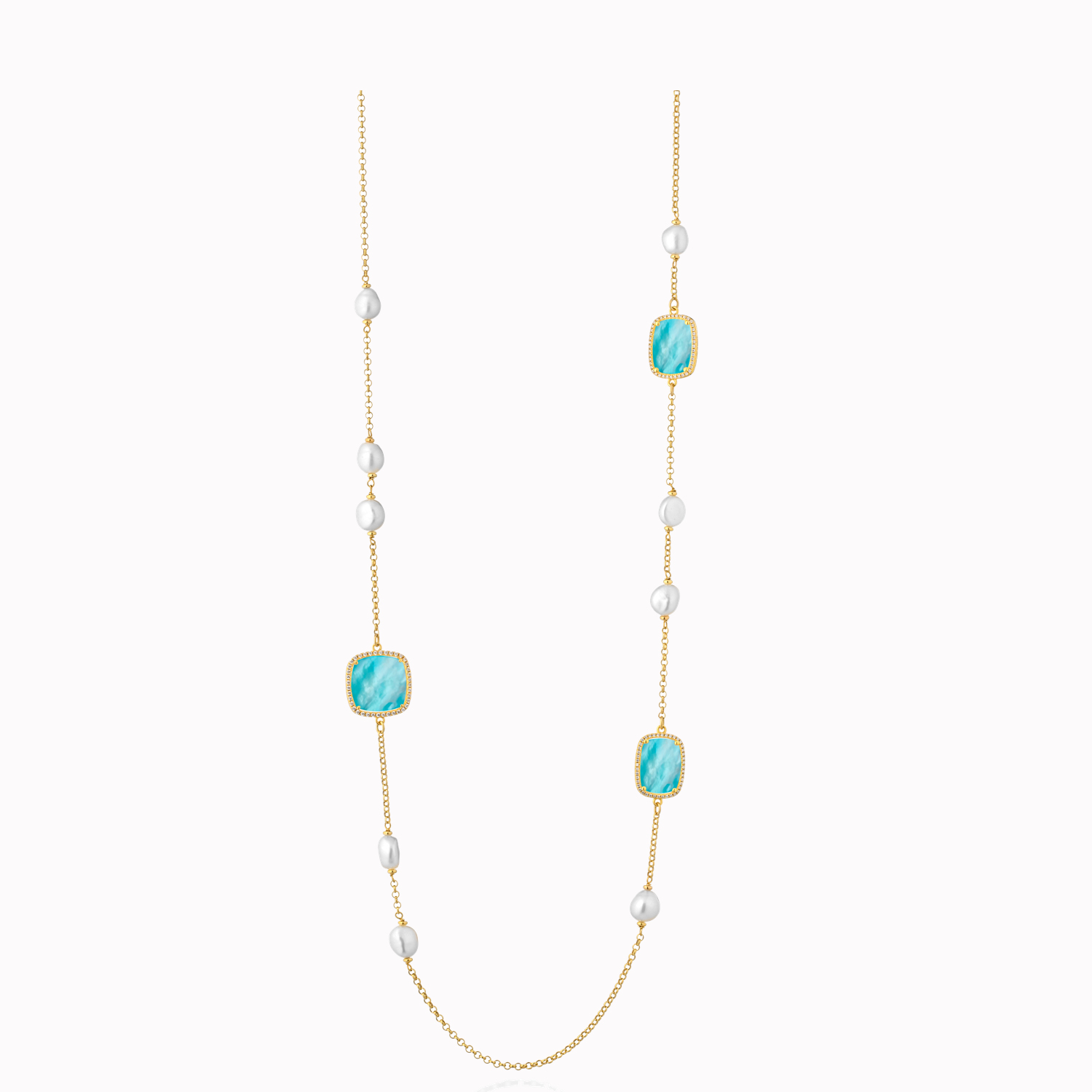 Necklace with baroque fresh water pearls, turchese, AG925 - ...