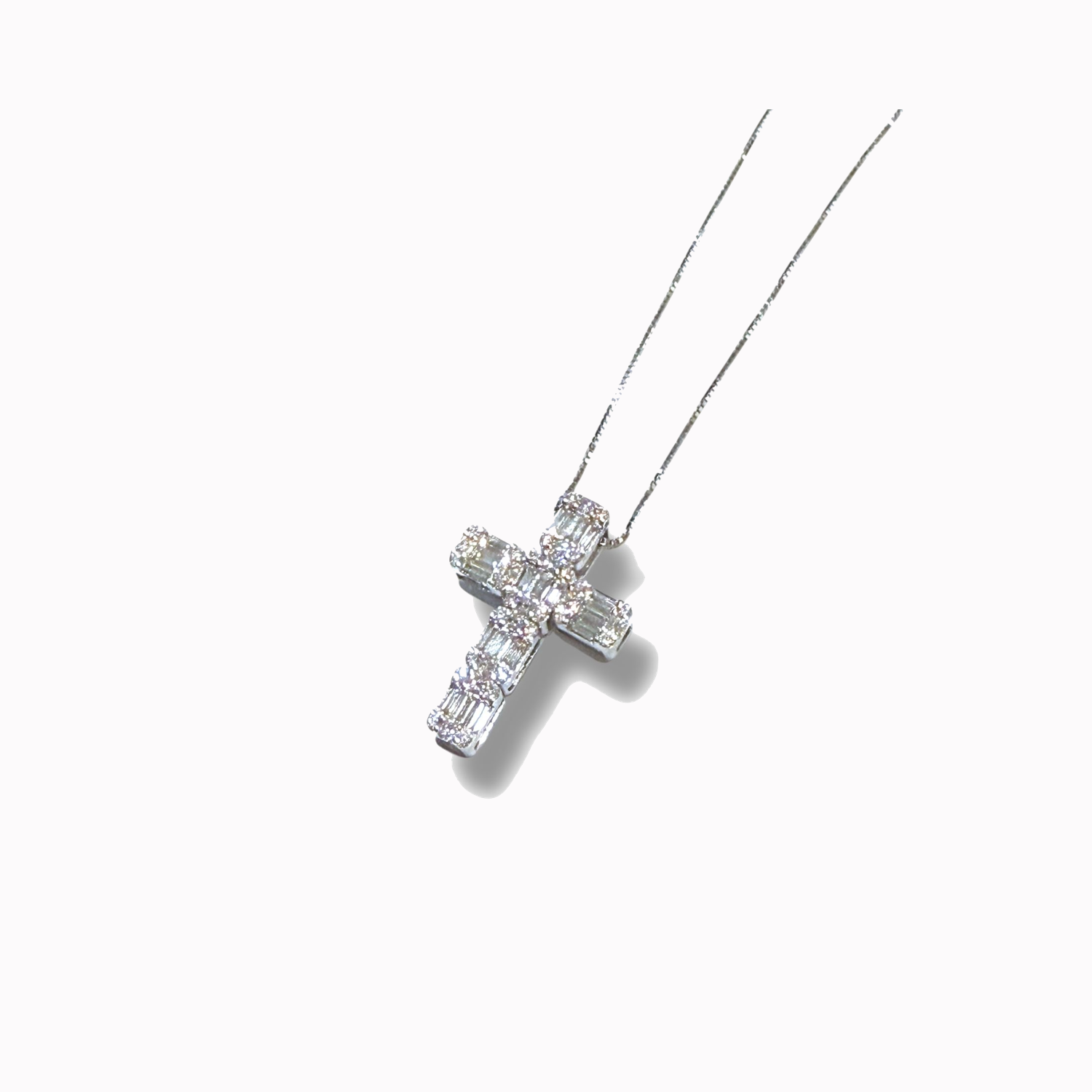 A ladies 18kt white gold cross pendant - claw set with a nat...