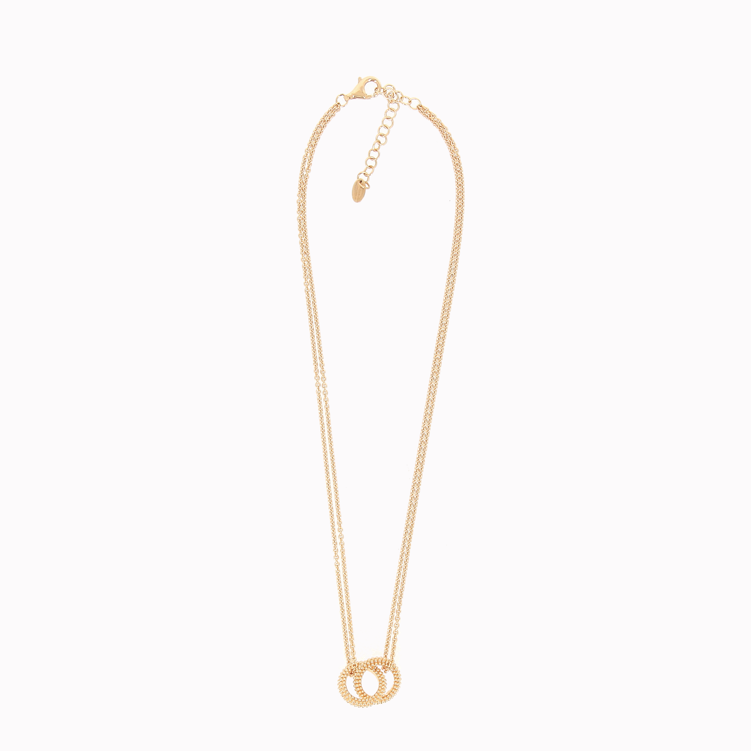 A beaded necklace by Pesavento inspired from the gran spinat design finished of with small Beaded double circle - Collection Pixel. In silver 925 yellow gold plated