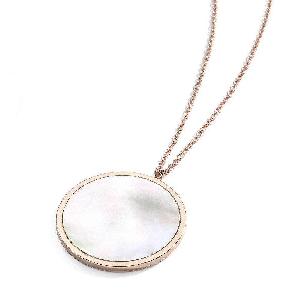 The elegance of mother-of-pearl in a necklace with a sweet and sinuous design. A jewel full of energy for those who want to face every day with positivity. Mother of pearl is a symbol of prosperity and protection for all those who carry it with them. Necklace in 18 kt rose gold and mother of pearl Chain length: 70cm