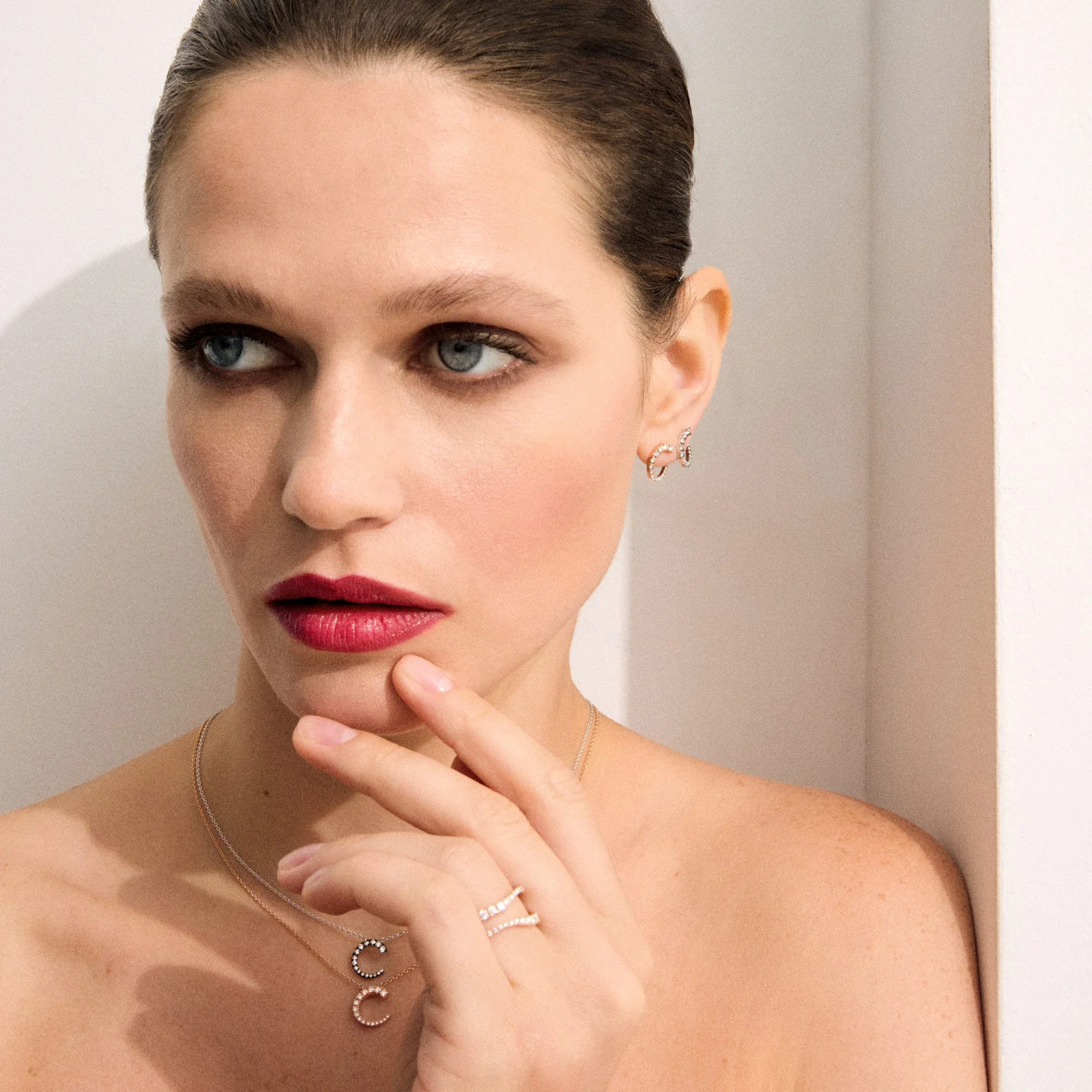 the ephemeral and the eternal, creating a splendid interplay of light and relief between an 18kt rose gold necklace inset with natural brilliant cut diamonds - in F Colour IF-VVS Clarity VG,VG,VG Cut 0.23 cts in total.