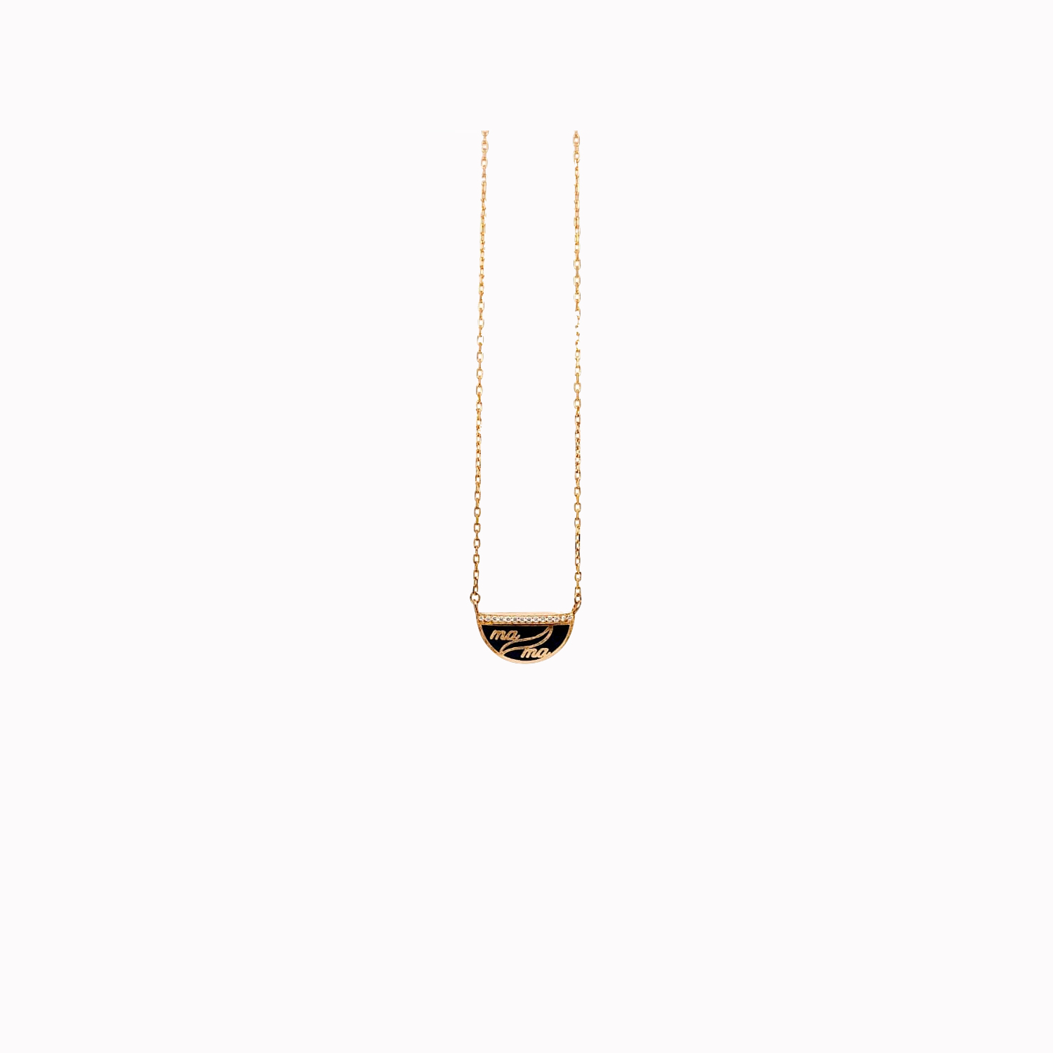 A ladies 925 silver yellow gold plated reversible necklace inset with gray & blue enamel inset with cubic zirconias. Set with a semi looped chain silver 925 rose gold plated.