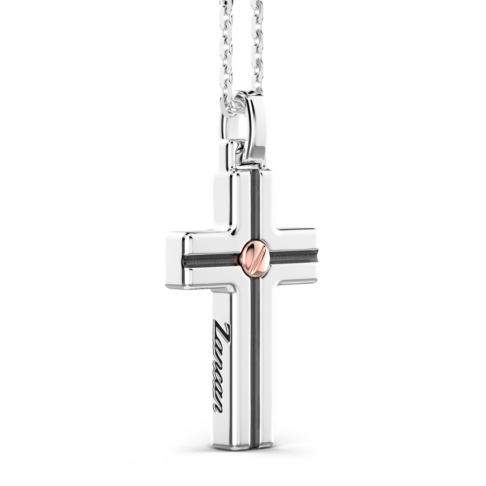 Silver necklace with cross pendant and rose gold screw