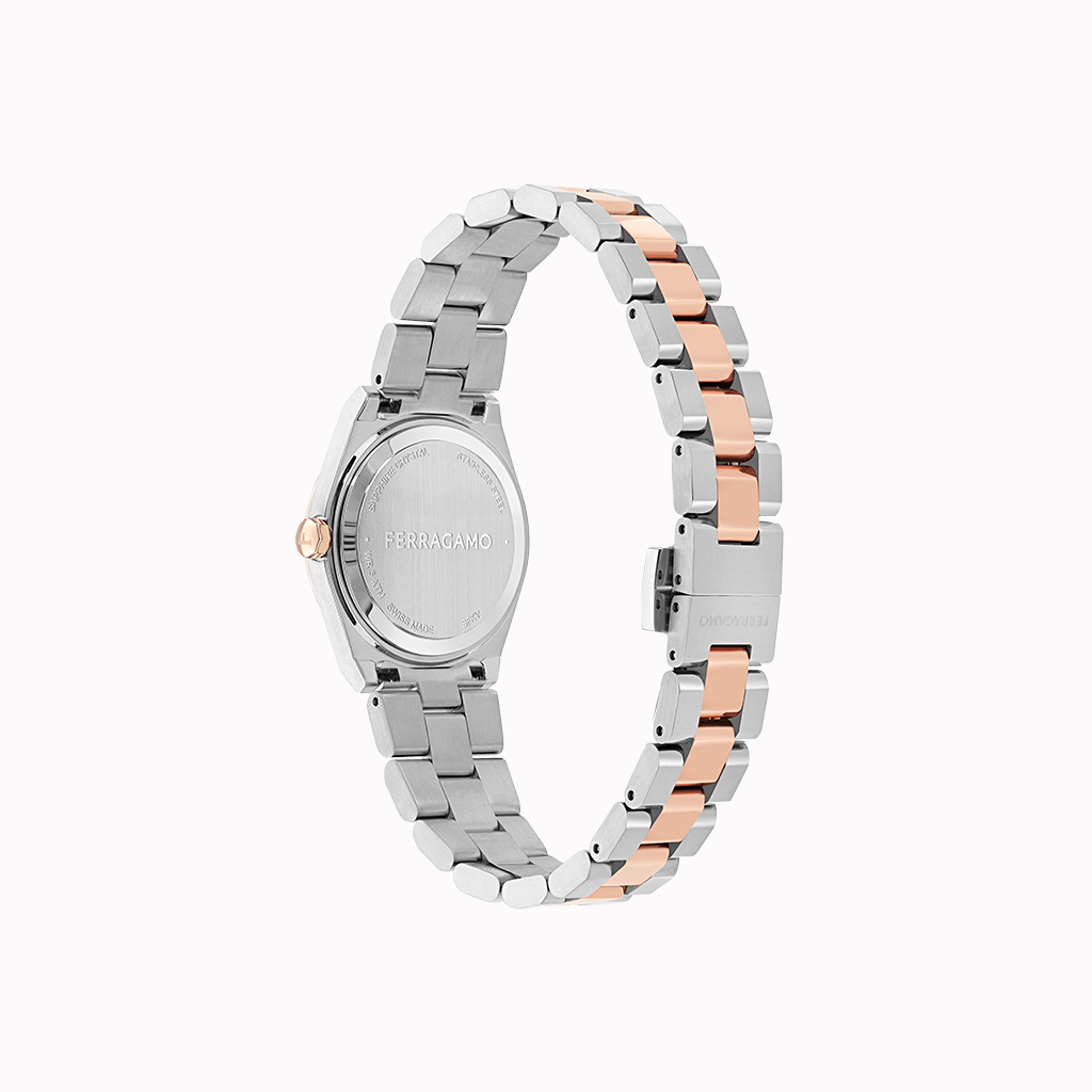 Among Ferragamo’s best-selling models, Vega captures the beauty of every single moment with its clean geometric design graced by the double Gancini motif on the dial. Its timeless modernity and versatile design make it suitable for every type of consumer.