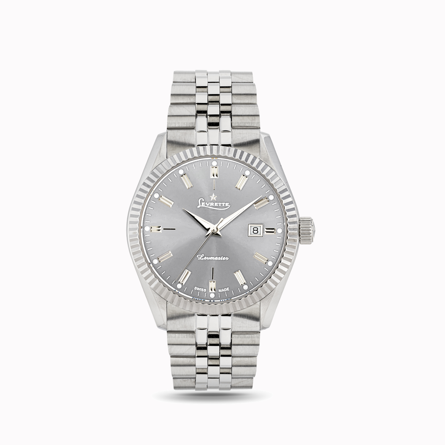 The watch characterised by the helical lugs of the original model is s distinguished only by its diameter and a knurled bezel. The crystal is scratch resistant sapphire and the screw-down crown is personalised with a five-pointed star. The case is also screw-down, guaranteeing water resistance to 100 meters